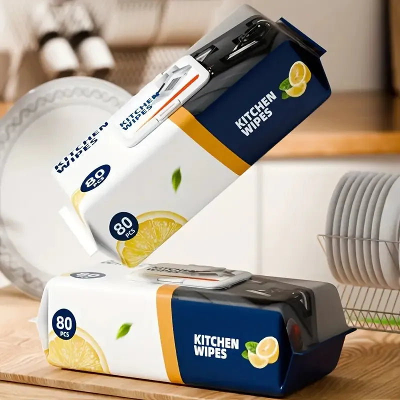 Keep your kitchen clean and fresh with this pack of 80 kitchen wipes, designed for quick and effective cleaning. These wipes are made from soft yet durable material, making them perfect for wiping countertops, stoves, dining tables, and other kitchen surfaces. Easy to use and disposable, they help maintain hygiene and save time during daily cleaning tasks.